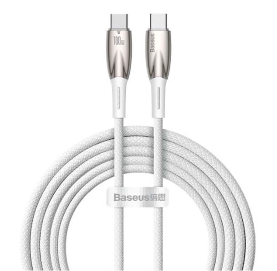 Baseus Glimmer Series Beyaz CADH000802 2Mt 100W PD Type-C To Type-C Şarj Kablosu Örgülü