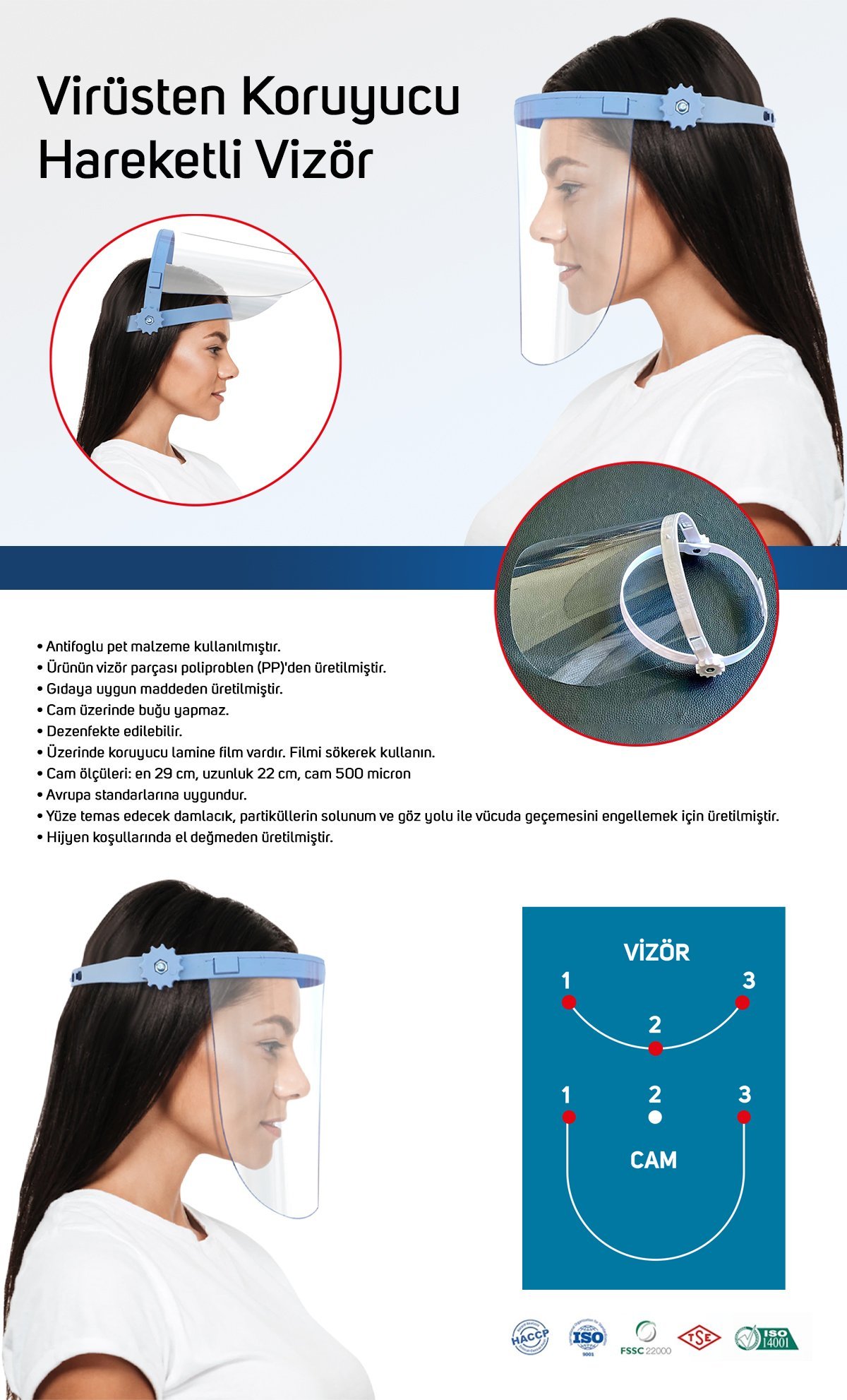 - Ürünün vizör parçası poliproblen (PP)'den üretilmiştir.